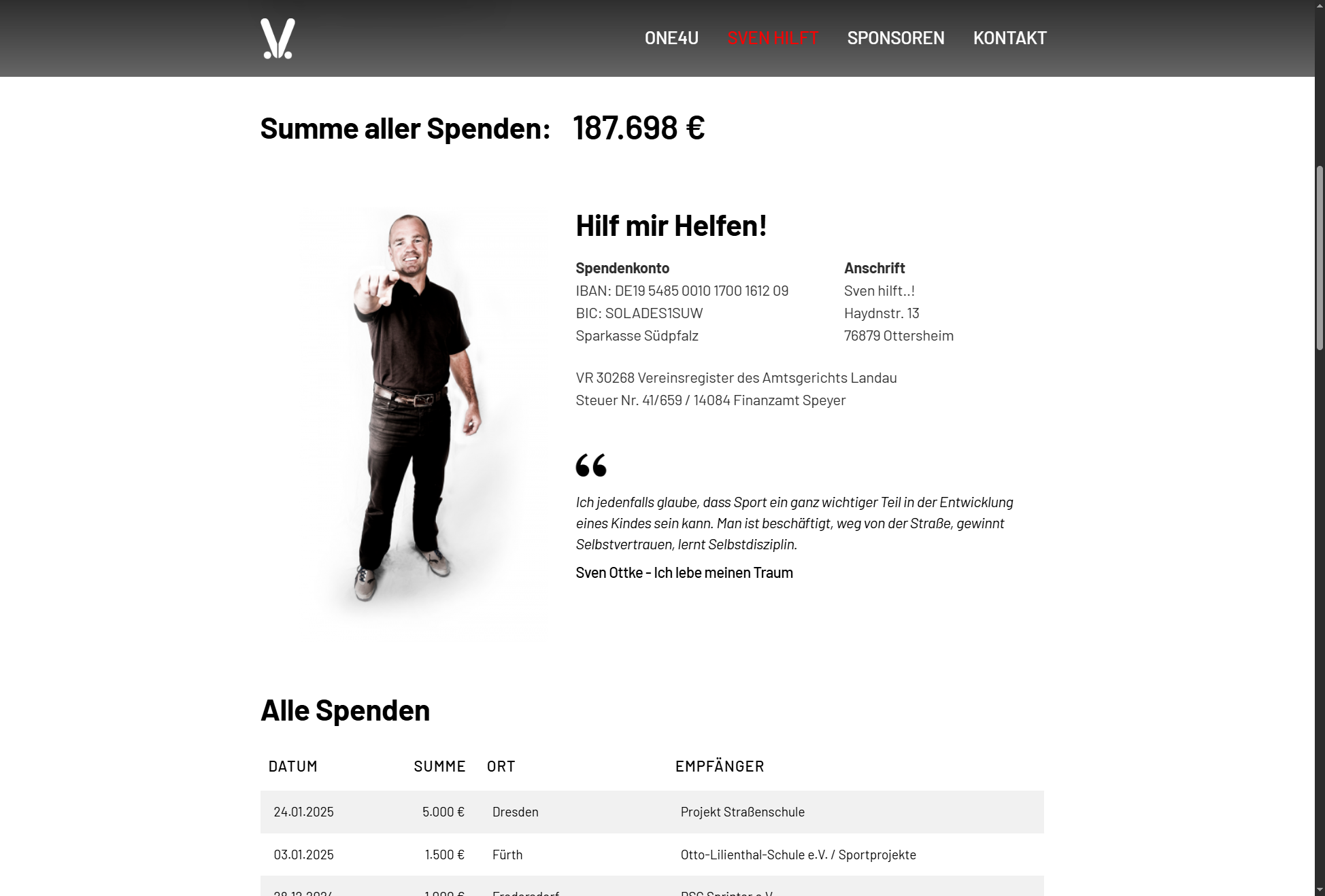 Die Spenden für Sven Hilft werden in einer extern abgelegten Tabelle gepflegt, darin vorgenommene Aktualisierungen sind in Echtzeit auf der Website sichtbar.