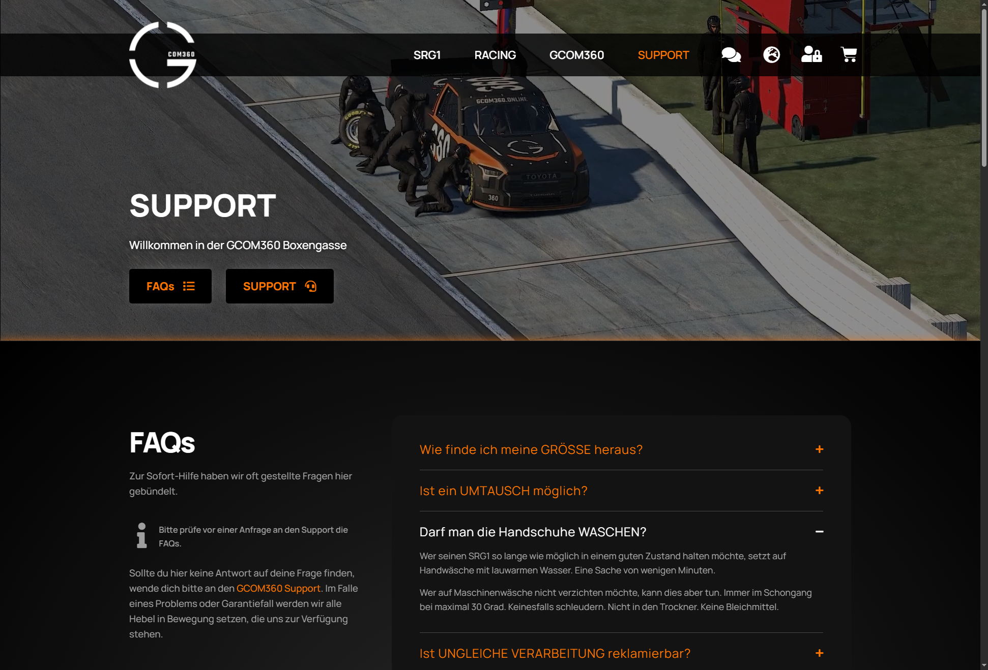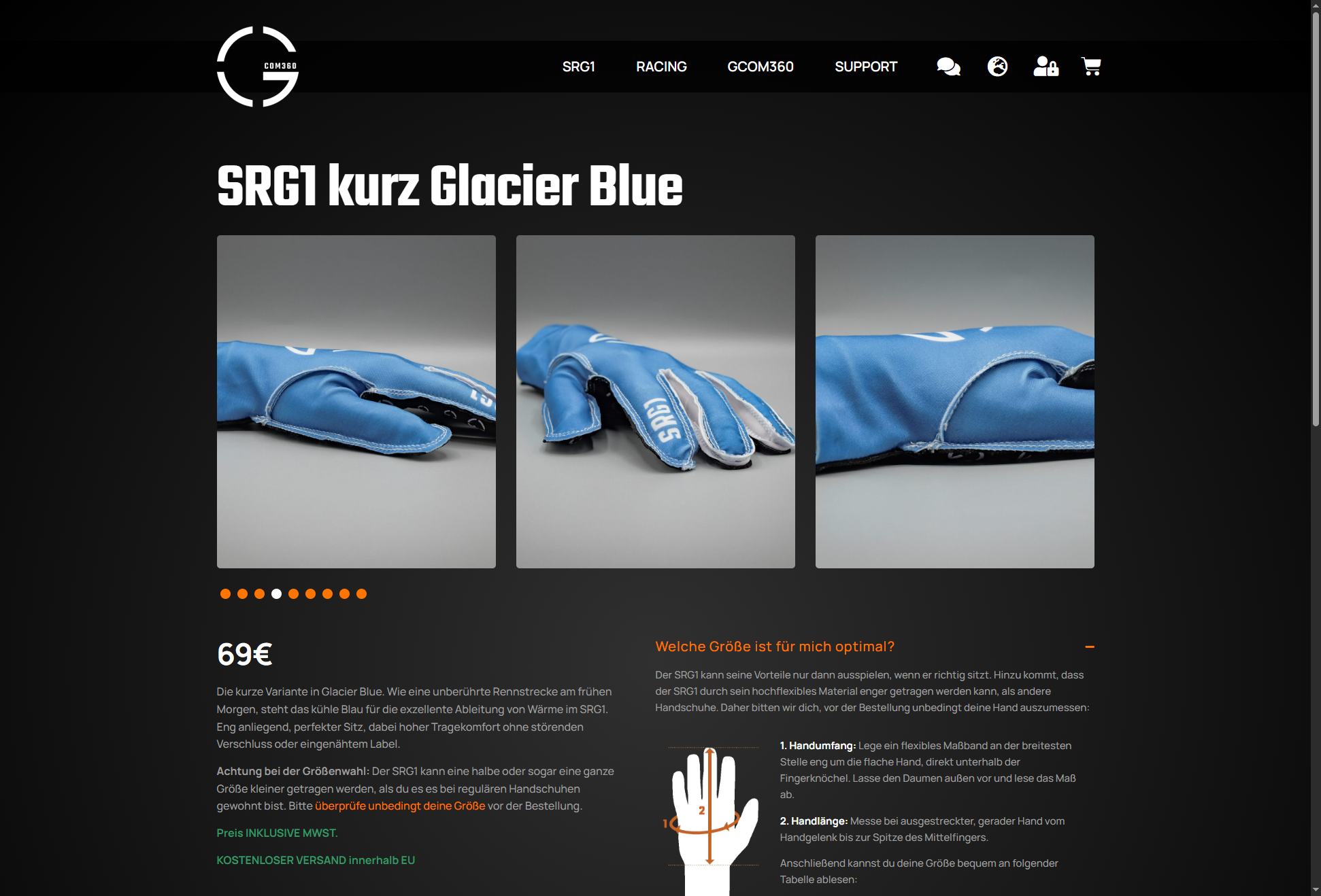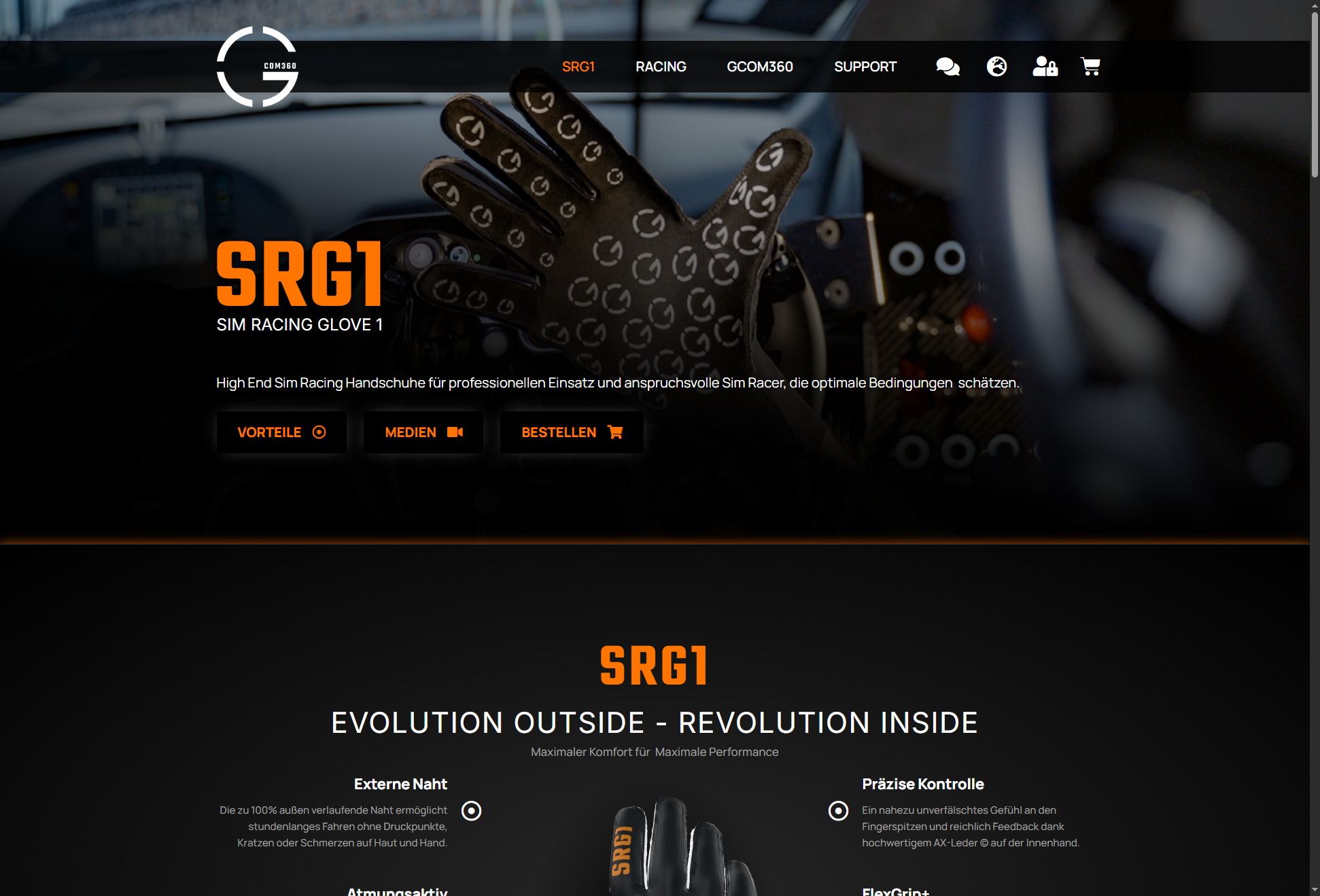 Die zweisprachige Website mit integrierter Bestellmöglichkeit ist einerseits für schnelle Vermittlung der Produktvorteile und einen unkomplizierten Kauf ausgelegt. Mit stets aktuell gehaltenen Meilensteinen und Roadmap von GCOM360, virtuellen Racing Teams und einer 3D Animation der Sim Racing Handschuhe, präsentiert sich die Marke aus Süddeutschland als umtriebiger Akteur in der Sim Racing Szene.