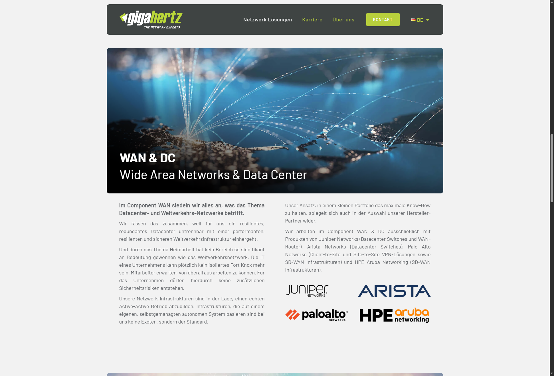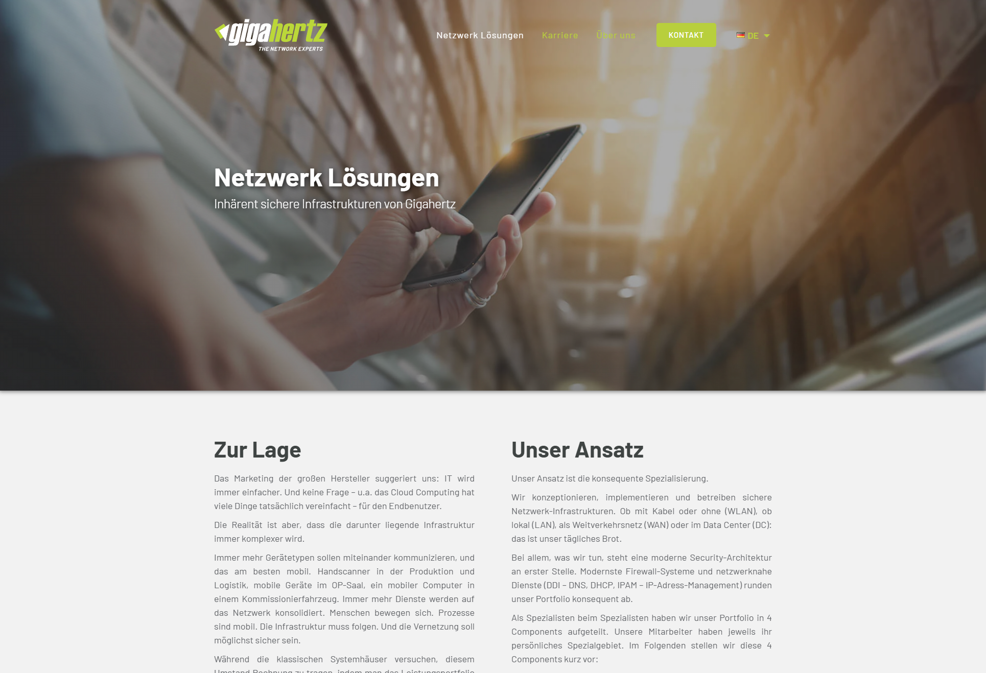 Der Spezialist beim Spezialist, diese Position galt es beim Relaunch der Website zu vermitteln. Dabei wurde der Fokus auf die Kernleistung der inhabergeführten Gigahertz GmbH gelegt: Netzwerk-Lösungen.