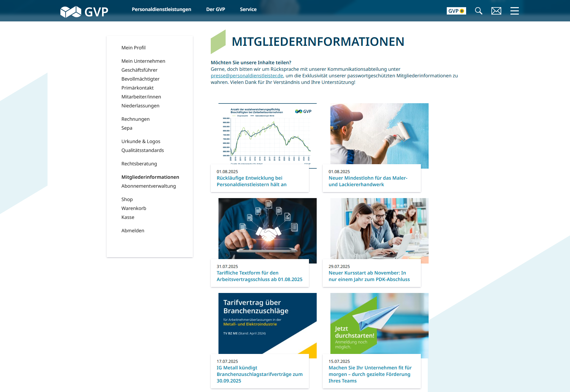Auf über 60 Seiten werden Musterverträge, Seminare, Rechtsberatung durch Volljuristen, filterbare Newsletter, Verwaltung der GVP+ Mitgliedschaft in Echtzeit und Online Shop digital abgebildet. Flankiert von tagesaktuellen Beiträgen, exklusiven Mitgliederinfos und PDF Downloads.